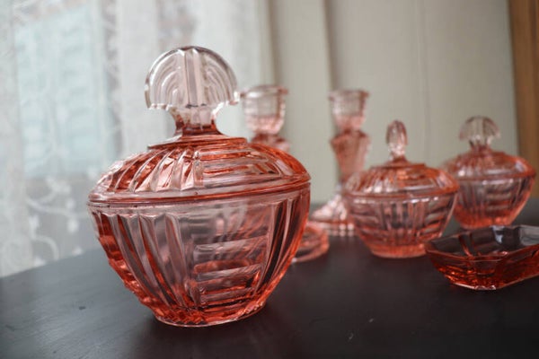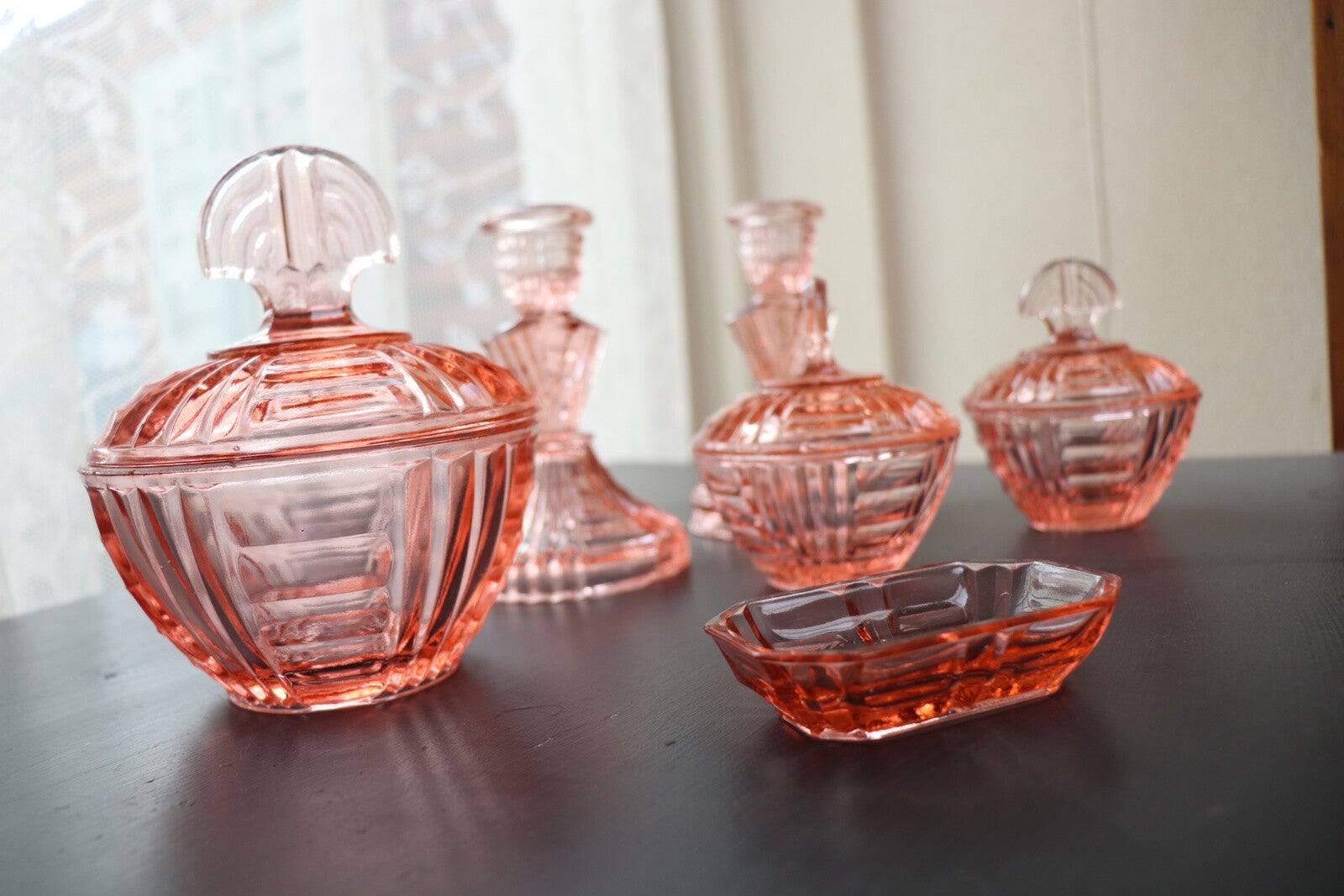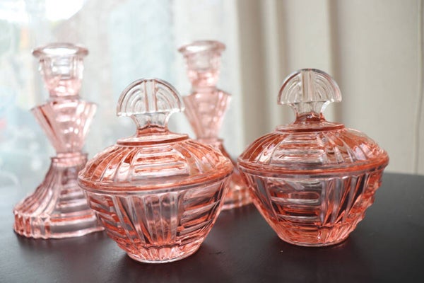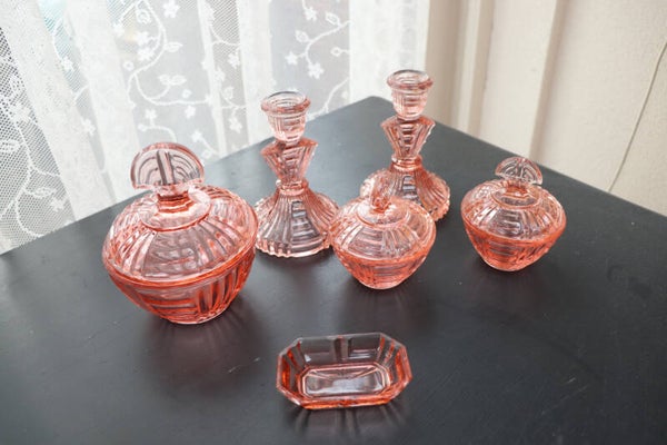 Prachtig is deze set die ooit op een kaptafel heeft staan pronken. Vermoedelijk Art deco, is afkomstig uit Frankrijk.