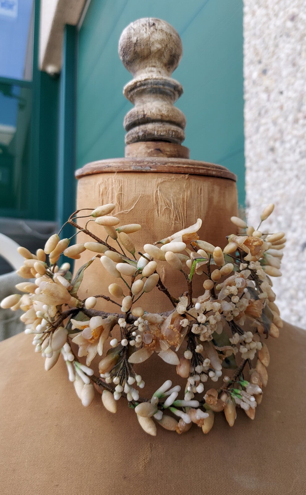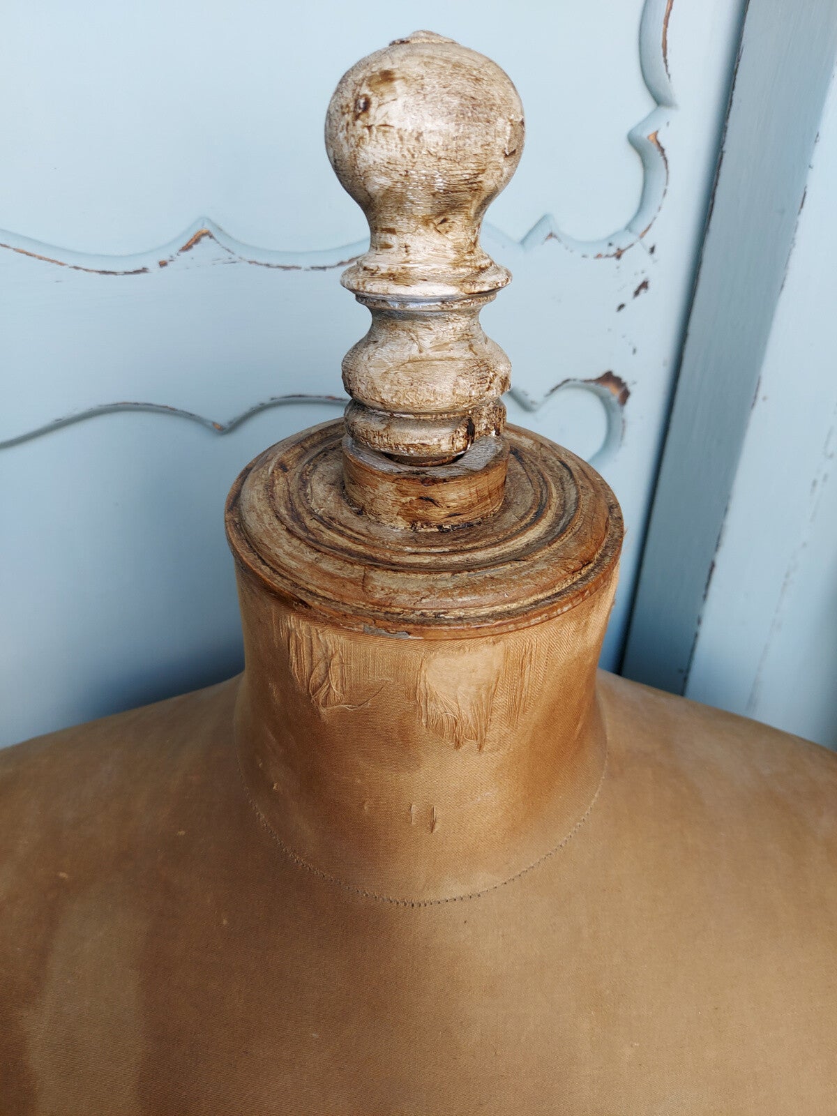 Prachtige doorgeleefde corsetbuste, compleet met corset. Aan de hals en armschijven zijn de sleetse plekken te zien, wat hem juist nog mooier maakt.
