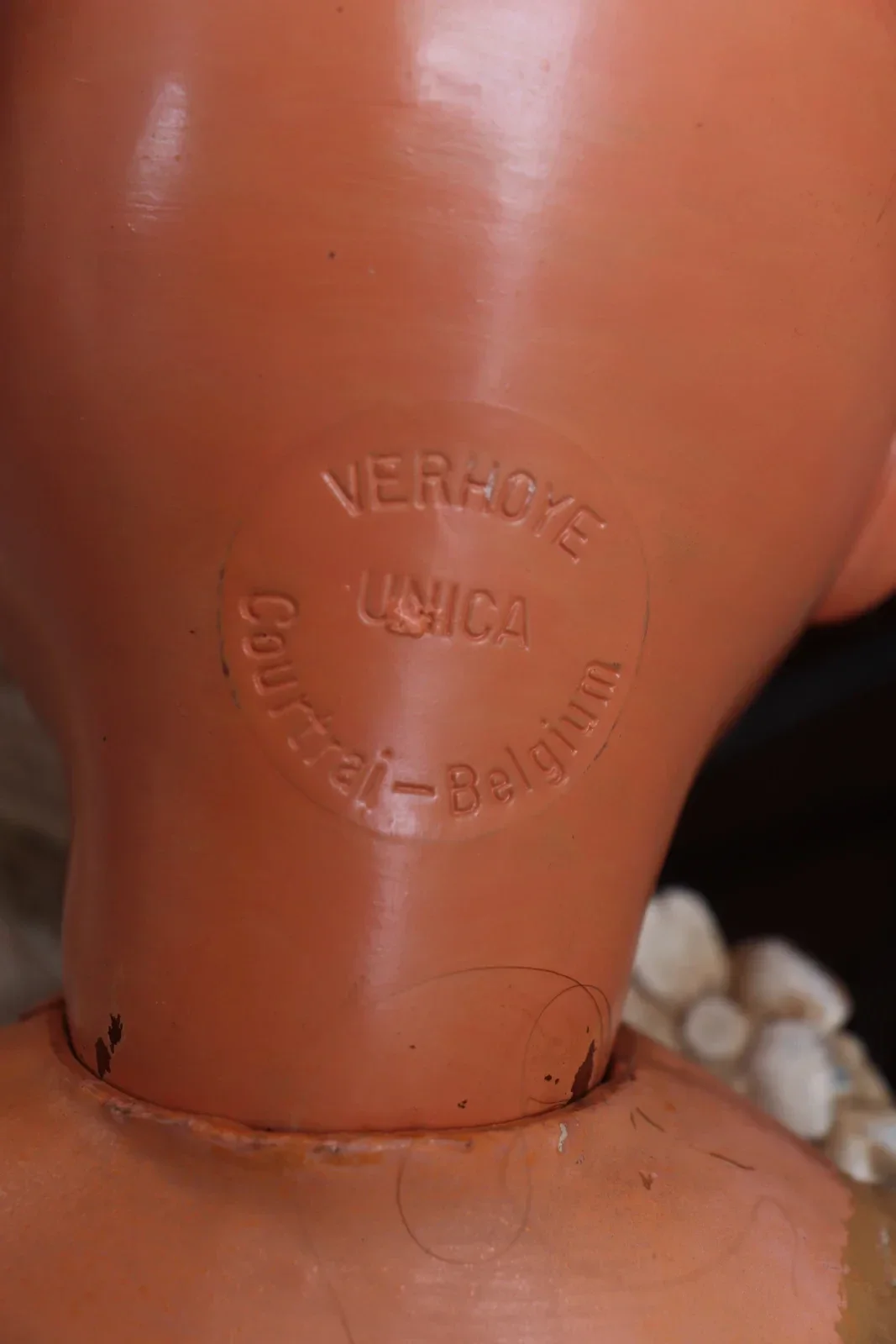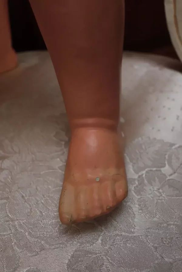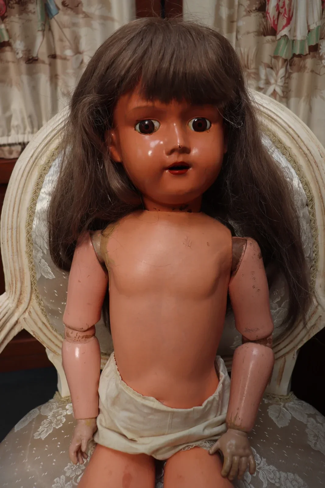 Deze pop van Unica is echt een ouwetje van papiermaché en een hele mooie pruik. Ze is een een geleefde staat maar daardoor juist ook heel mooi.