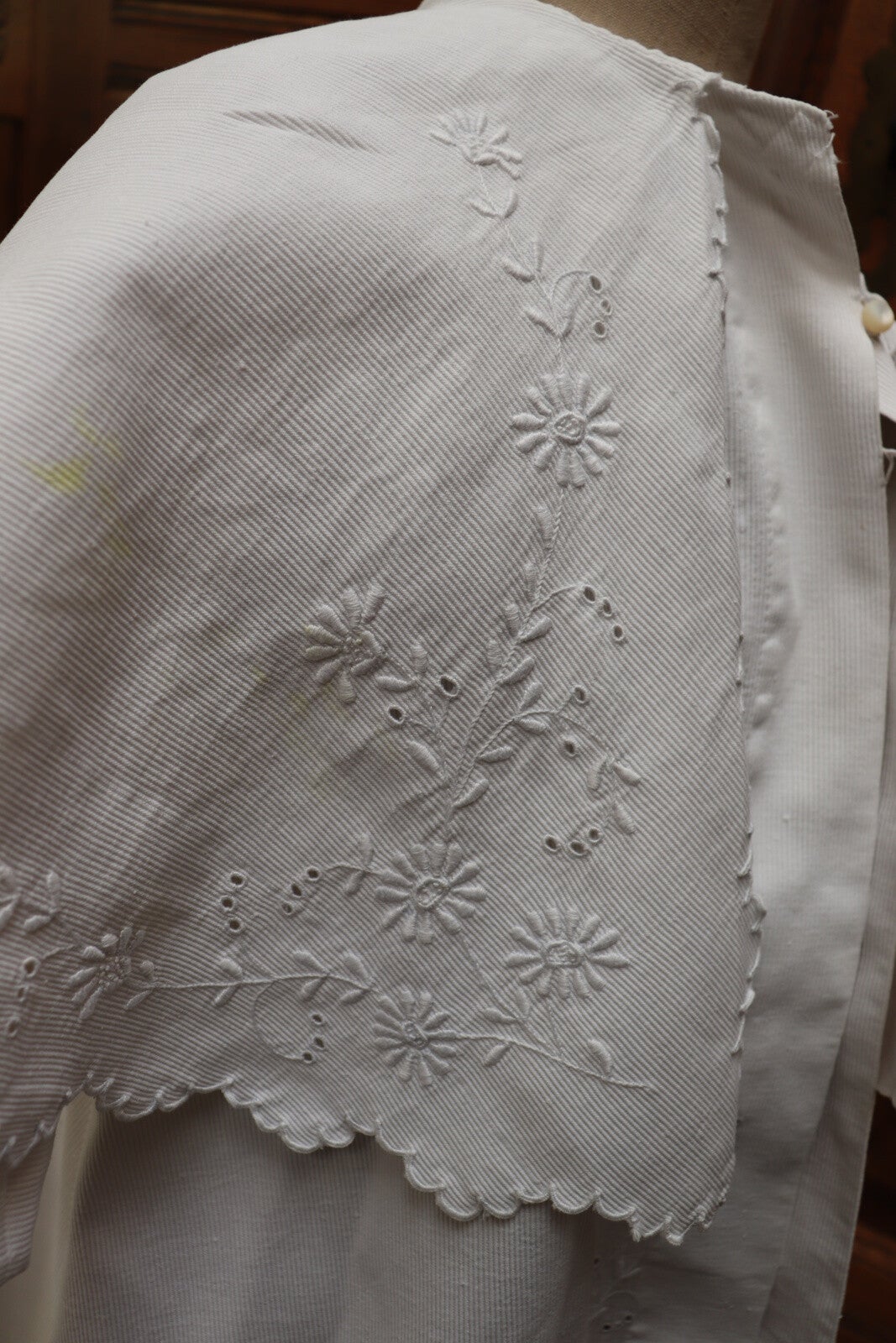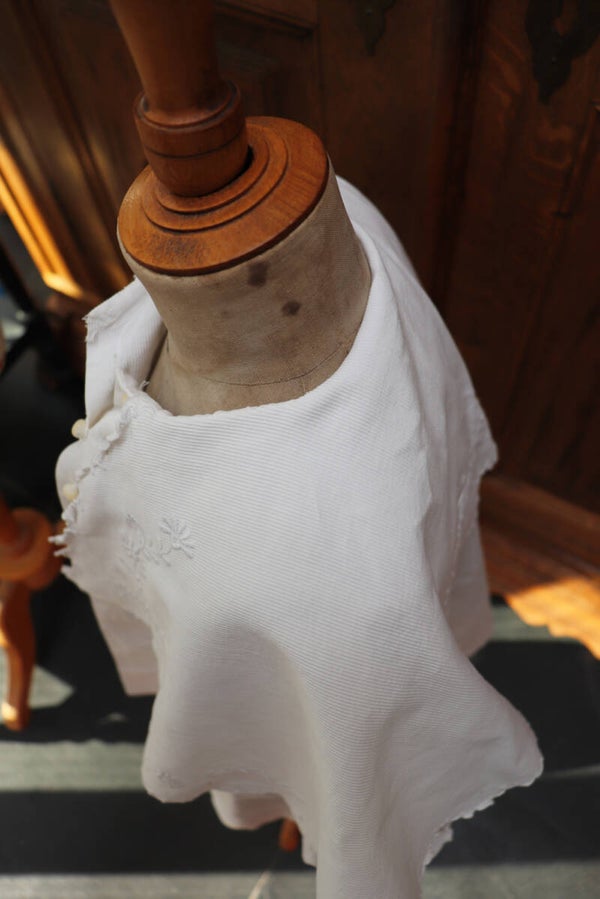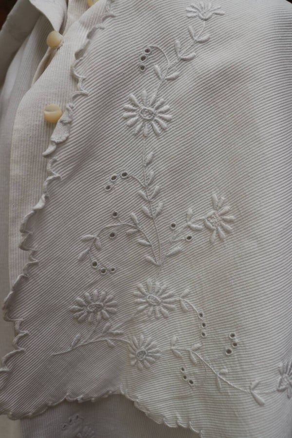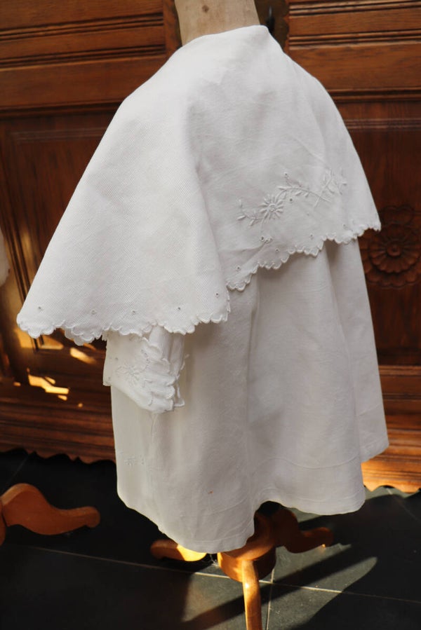 Dit jasje met de cape eraan vast heeft hele mooie borduursels en is ook opengewerkt.