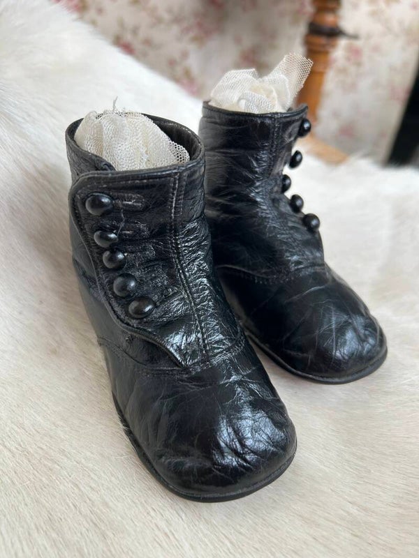 Zo lief zijn deze Victoriaanse knoopschoentjes. Lekker veel gedragen aan de zool te zien en slechts met een kleine beschadiging aan de buitenzijde van de rechterschoen, zoals op de foto's te zien.