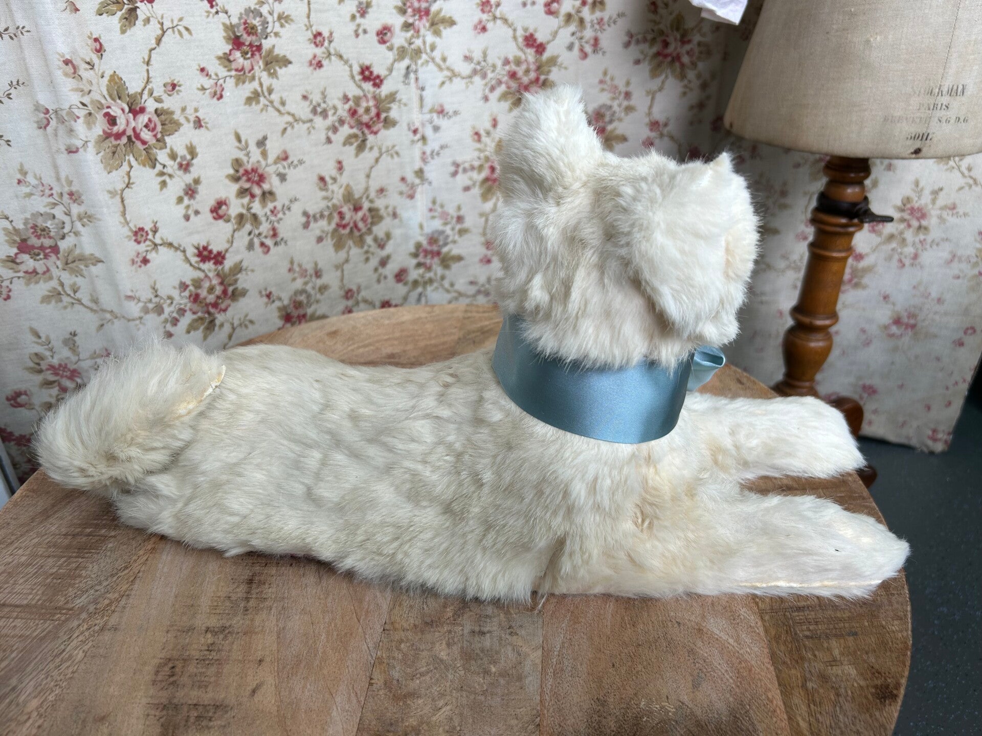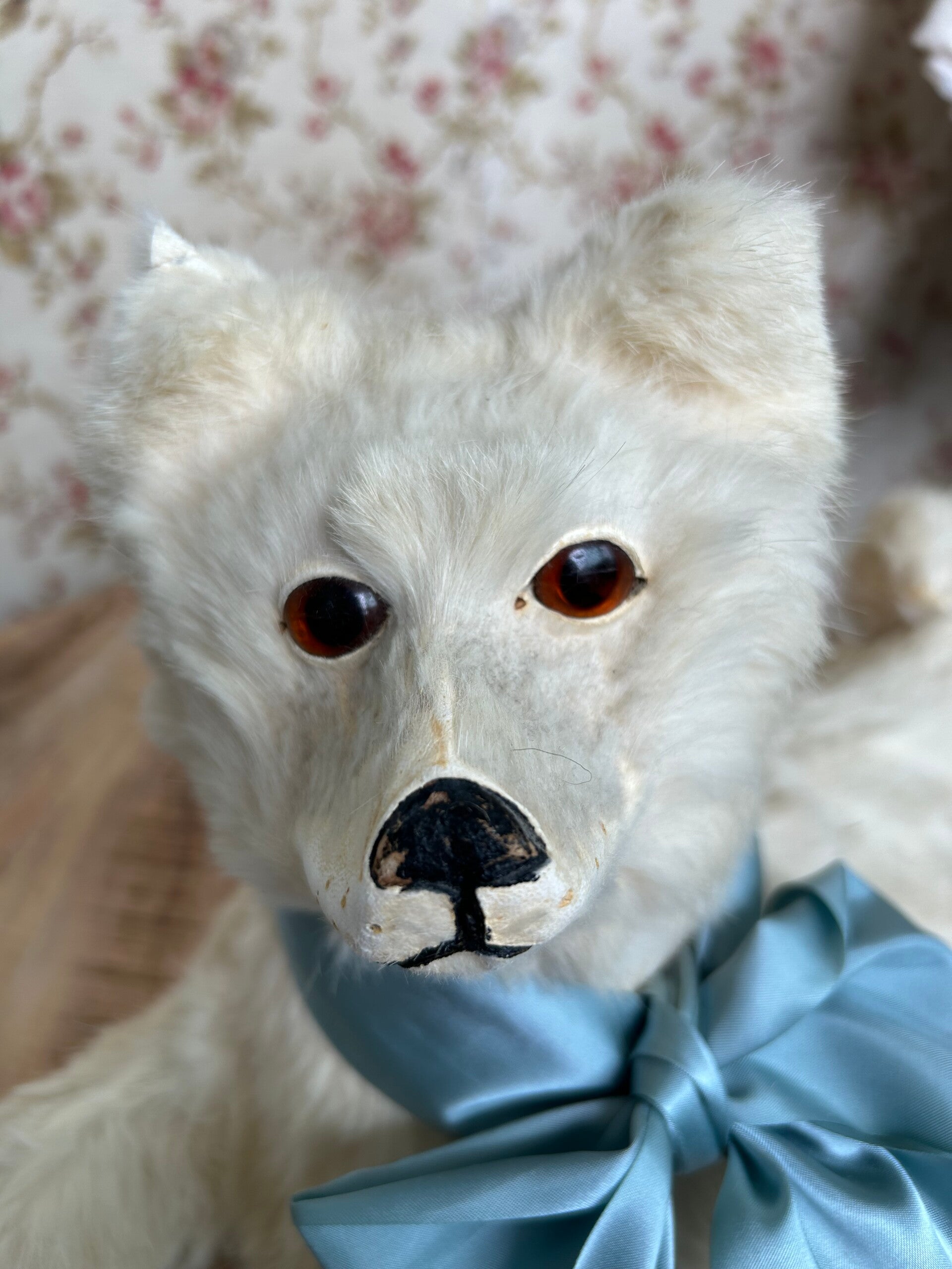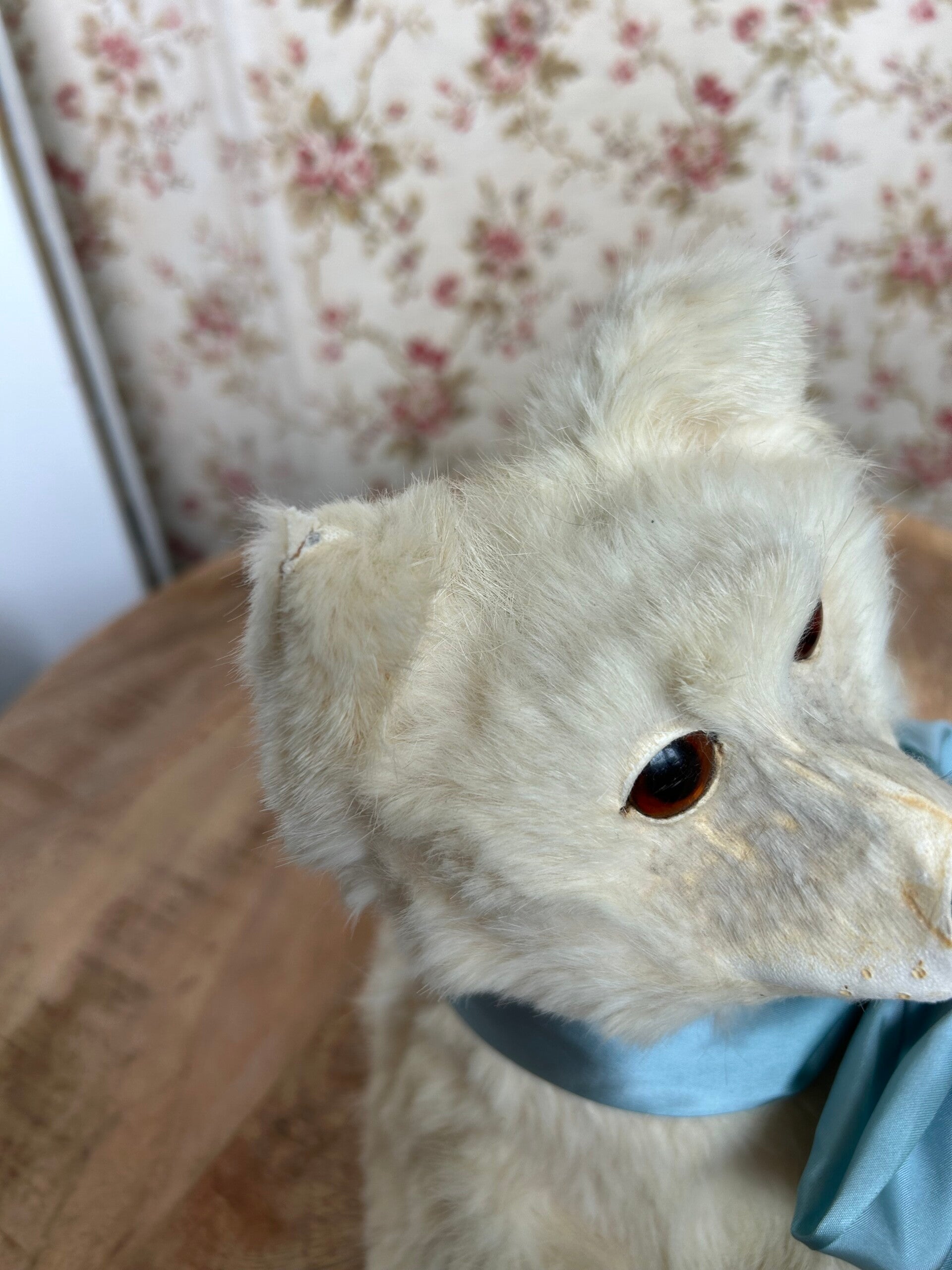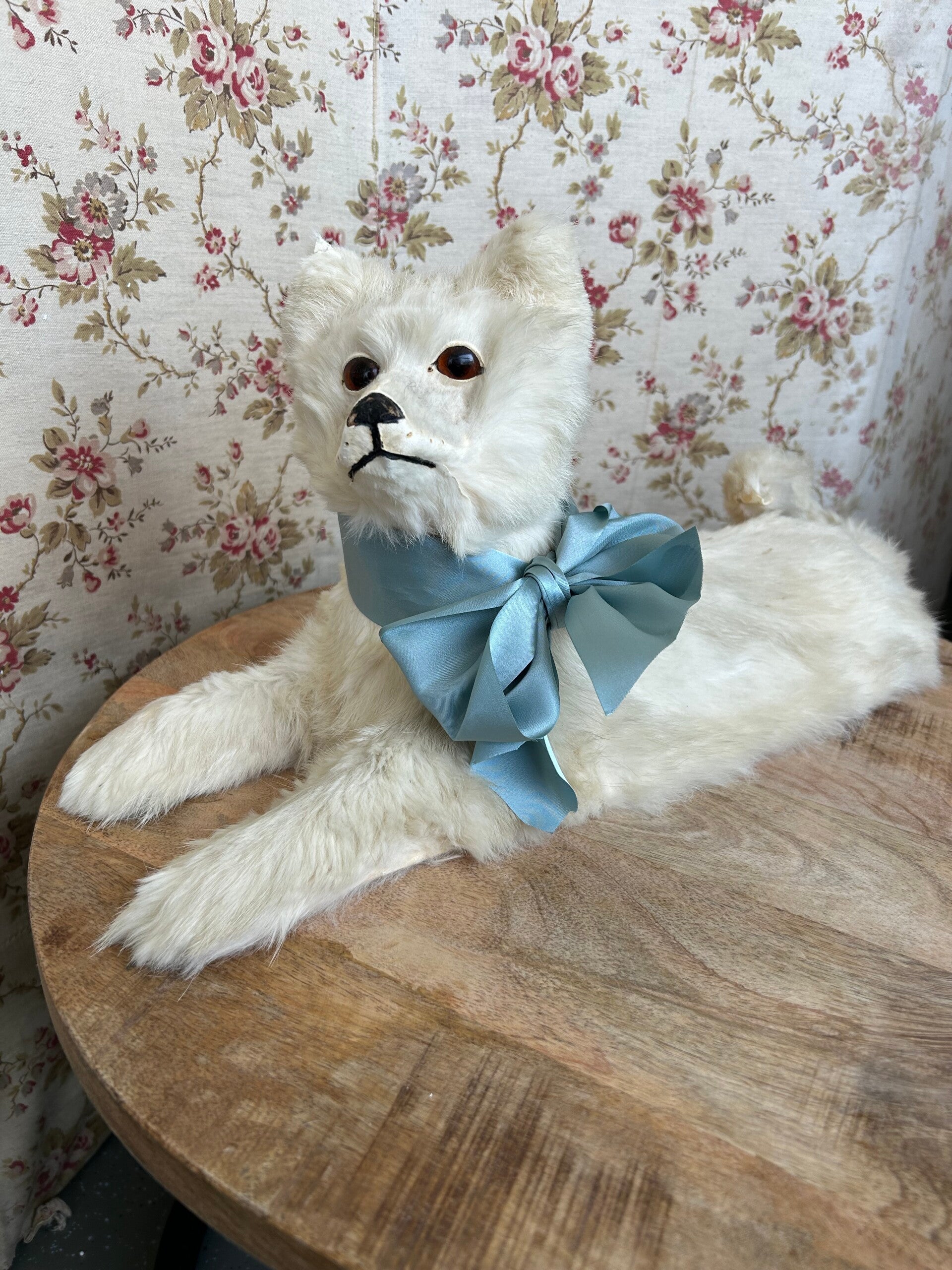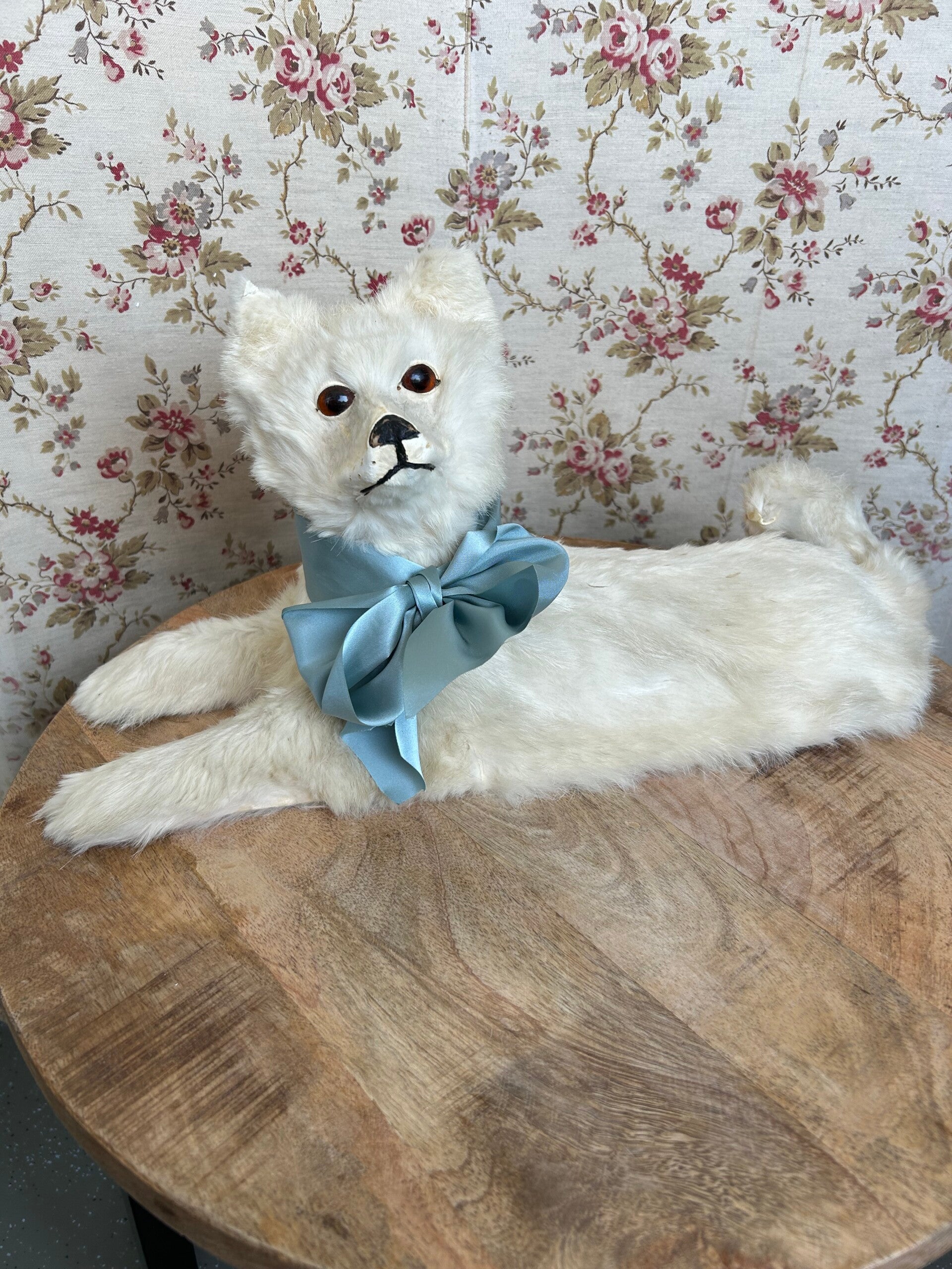 Zeldzame vondst is deze pyamahond in klein formaat. De kop is beweegbaar. Het bont is nog prachtig. Slechts aan de oren en het neusje is wat slijtage te zien.
