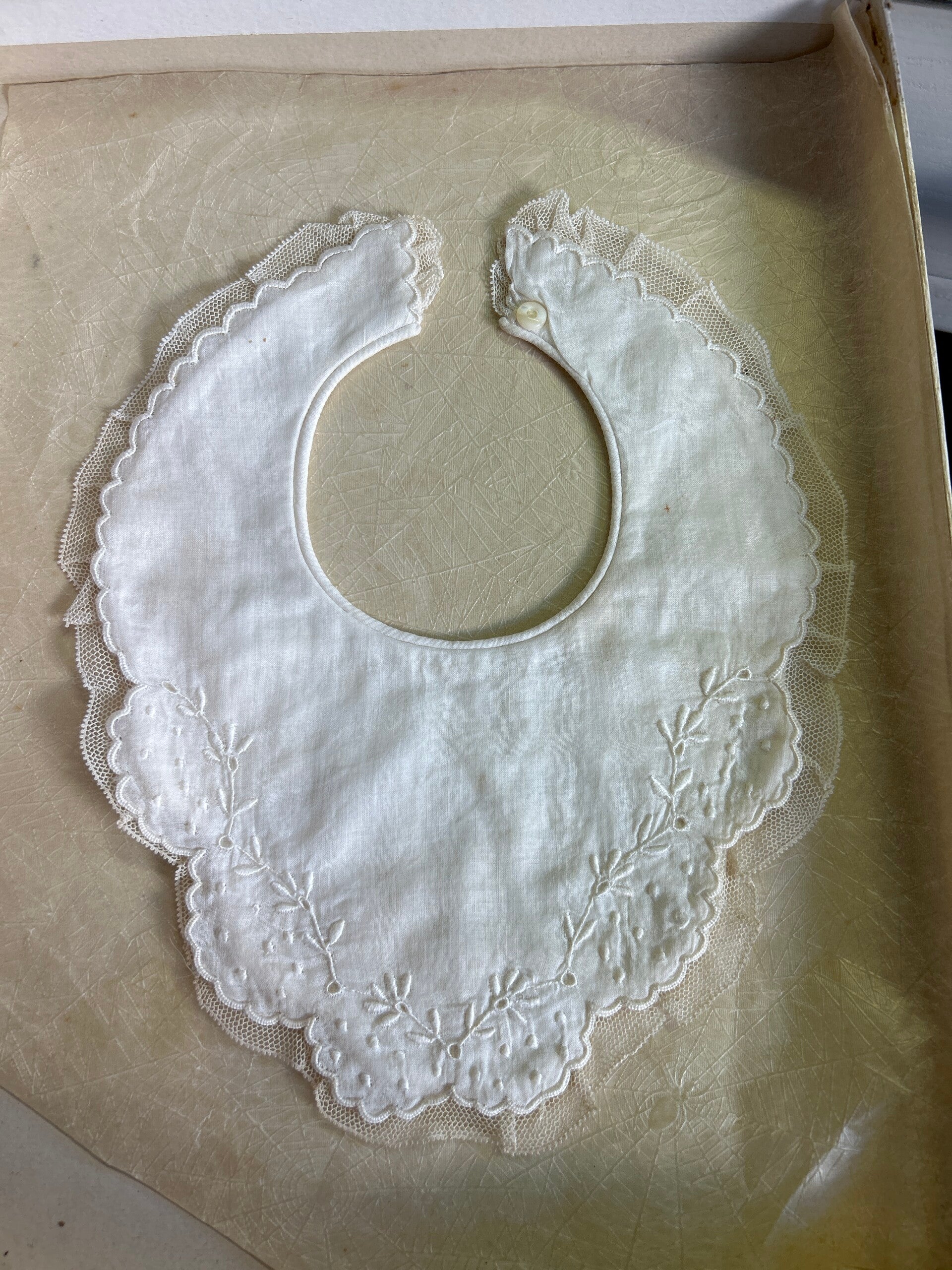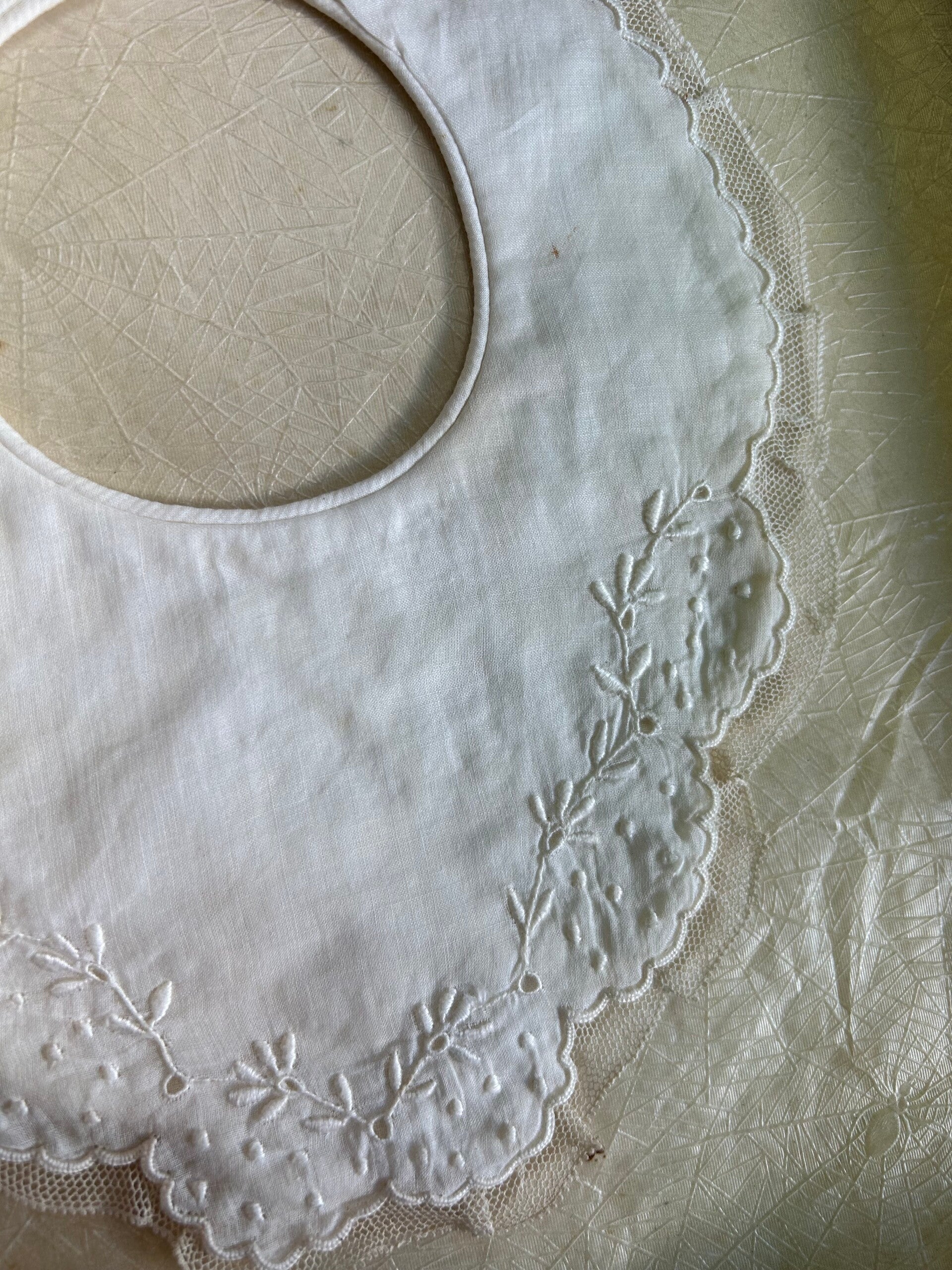 Schattig babykraagje. Broderie afgezet met kant.