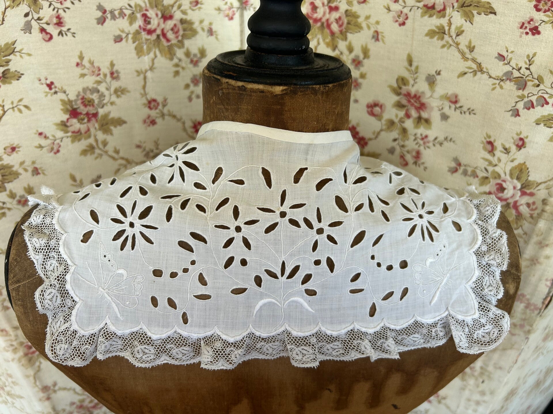 Op de punten zijn vlinders geborduurd. Schattig op een paspop of om gewoon te gebruiken. Heeft hier en daar wat kleine vlekjes.