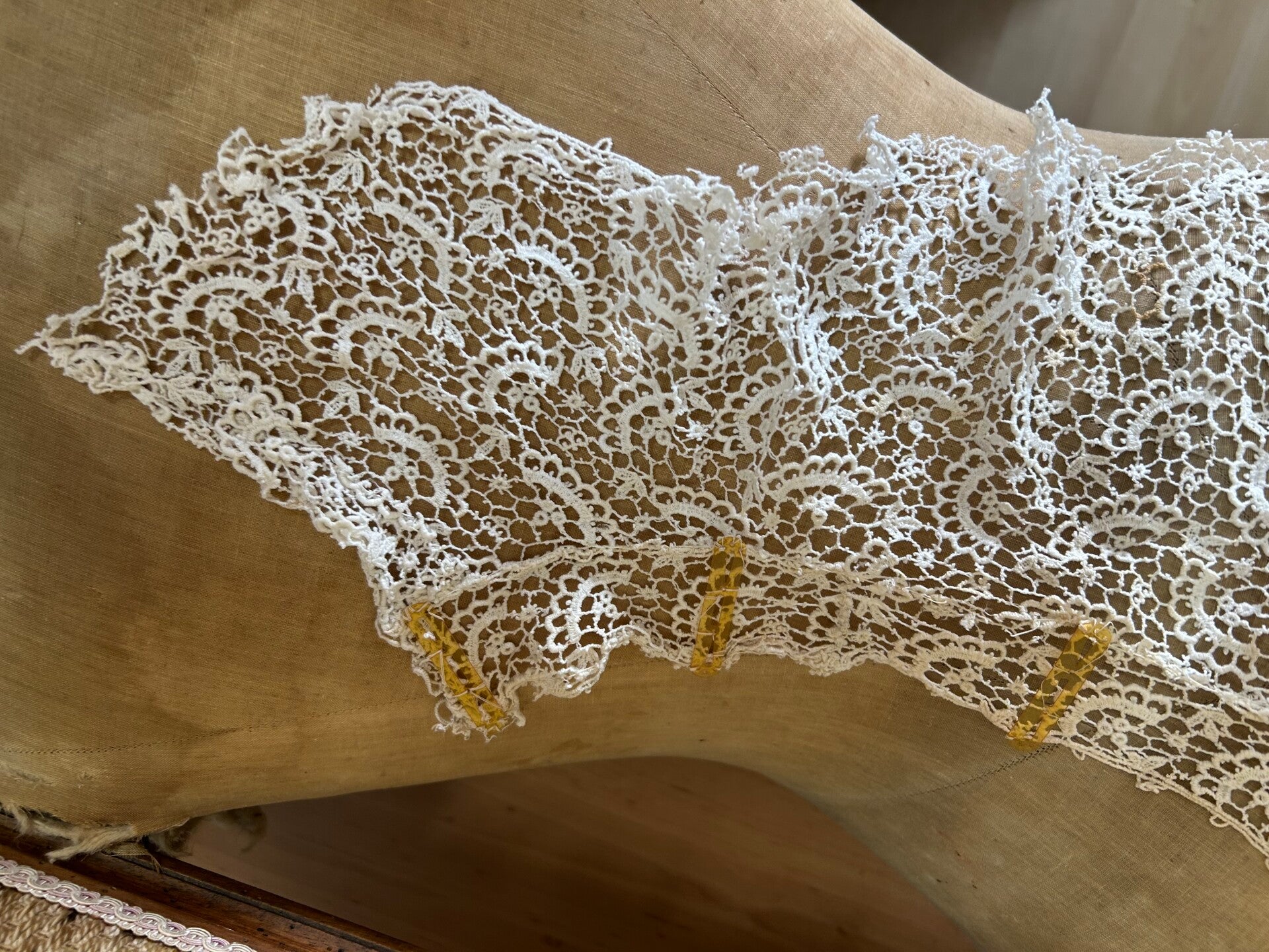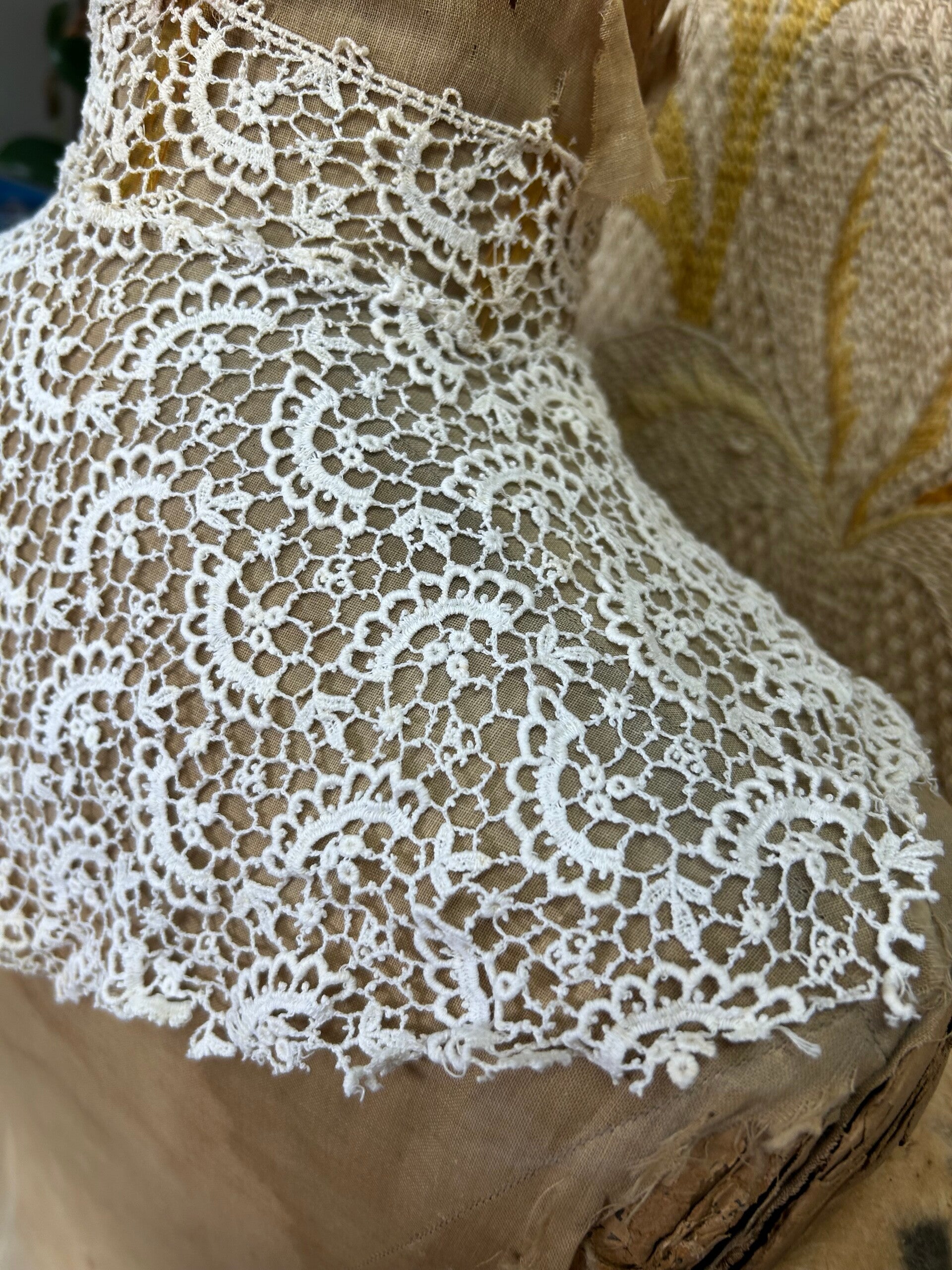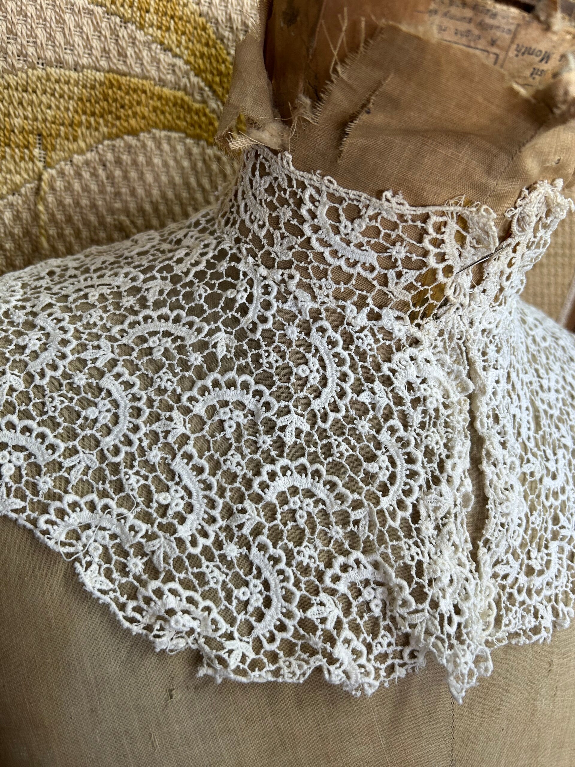 Prachtige antieke kraag met boord met baleinen. Gezien de leeftijd in prima staat, heeft hier en daar wat vlekjes.